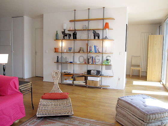 Cet appartement est composé d'un beau salon avec du parquet au sol et des fenêtres double vitrage. Ce salon très calme est meublé et équipé pour rendre votre séjour agréable : télé, canapé, 2 fauteuil(s), table basse, penderie, bibliothèque, etagère, placard, tabouret.