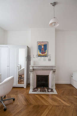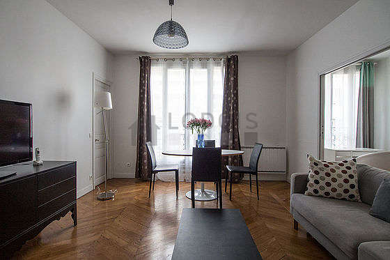Cet appartement est composé d'un séduisant salon avec du parquet au sol et des fenêtres double vitrage et vue sur rue. Ce salon calme est meublé et équipé pour rendre votre séjour agréable : télé, canapé, table à manger, table basse, placard, 4 chaise(s).