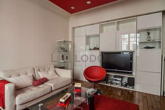 Cet appartement est composé d'un plaisant salon avec du parquet au sol et des fenêtres et vue sur cour. Ce salon très calme est meublé et équipé pour rendre votre séjour agréable : télé, canapé, 1 fauteuil(s), table basse, bureau, placard.