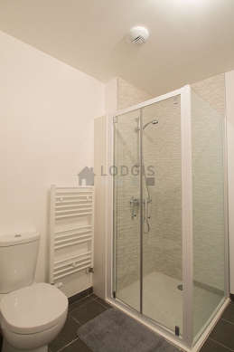 Cet appartement est équipé d'une salle de bain magnifique. Cette salle d'eau bénéficie du nécessaire pour votre bien-être au quotidien : serviettes de bain, etagère, douche séparée, sèche cheveux, lave main, radiateur sèche-serviettes. Les toilettes sont intégrées dans la salle de bain.