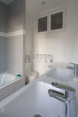 Cet appartement est équipé d'une salle de bain agréable et claire avec des fenêtres double vitrage. Cette salle d'eau bénéficie du nécessaire pour votre bien-être au quotidien : serviettes de bain, baignoire, sèche cheveux, lave main. Les toilettes sont intégrées dans la salle de bain.