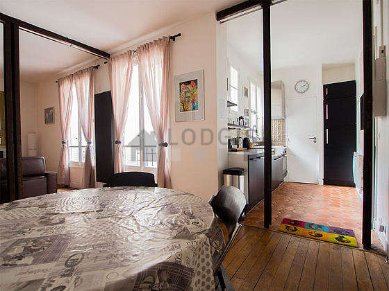 Cet appartement est composé d'un plaisant salon avec du parquet au sol et des fenêtres et vue sur cour. Ce salon est meublé et équipé pour rendre votre séjour agréable : télé, table à manger, table basse, bureau, bibliothèque, etagère, cheminée, 5 chaise(s)1 canapé(s) lit(s) de 160cm.
