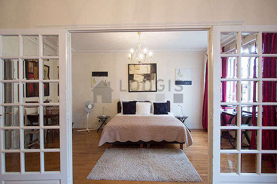 SéjourCet appartement est composé d'un beau salon avec du parquet au sol et des fenêtres double vitrage et vue sur cour. Ce salon très calme est meublé et équipé pour rendre votre séjour agréable : 1 fauteuil(s), table à manger, table basse, 1 chaise(s).