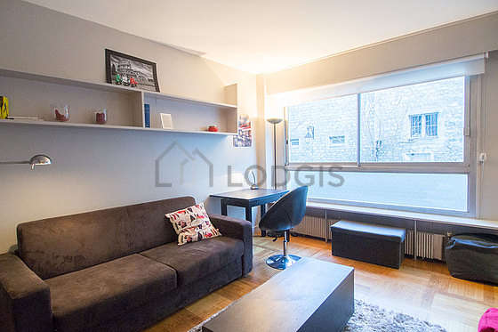 SéjourCet appartement est composé d'un plaisant salon avec du parquet au sol et des fenêtres et vue sur rue. Ce salon très calme est meublé et équipé pour rendre votre séjour agréable : télé, draps, couettes, 1 fauteuil(s), table basse, bureau, penderie, etagère, placard, 1 chaise(s)1 canapé(s) lit(s) de 140cm.