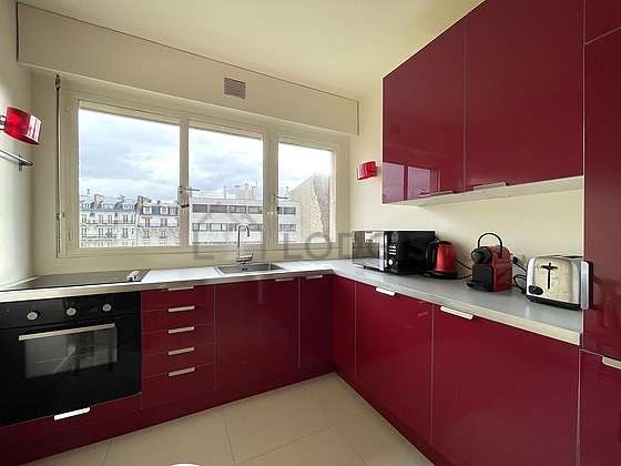 Cet appartement dispose d'une belle cuisine avec du carrelage au sol et tout l'équipement essentiel pour votre quotidien : plaques de cuisson, réfrigerateur, congélateur, four, micro ondes, grille pain, bouilloire électrique, cafetière, vaisselle, robot ménager.