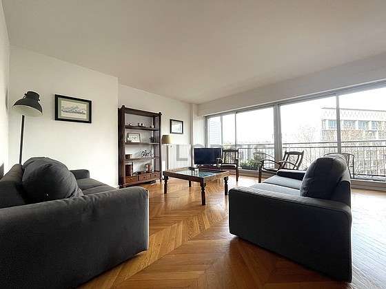 Cet appartement est composé d'un charmant salon avec du parquet au sol et des fenêtres double vitrage avec balcon. Ce salon calme est meublé et équipé pour rendre votre séjour agréable : télé, canapé, 3 fauteuil(s), table basse, etagère1 canapé(s) lit(s) de 140cm.