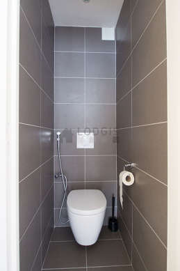Cet appartement est équipé d'une salle de bain magnifique et claire. Cette salle d'eau bénéficie du nécessaire pour votre bien-être au quotidien : serviettes de bain, placard, douche séparée. Les toilettes sont séparées de la salle de bain et situées dans une pièce indépendante.