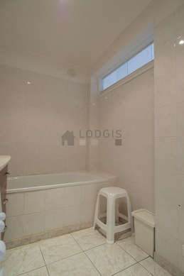 Cet appartement est équipé d'une salle de bain agréable. Cette salle d'eau bénéficie du nécessaire pour votre bien-être au quotidien : serviettes de bain, etagère, placard, baignoire, sèche cheveux, lave main. Les toilettes sont séparées de la salle de bain et situées dans une pièce indépendante.