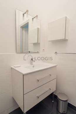 Cet appartement est équipé d'une salle de bain magnifique. Cette salle d'eau bénéficie du nécessaire pour votre bien-être au quotidien : serviettes de bain, placard, douche séparée, sèche cheveux. Les toilettes sont séparées de la salle de bain et situées dans une pièce indépendante.