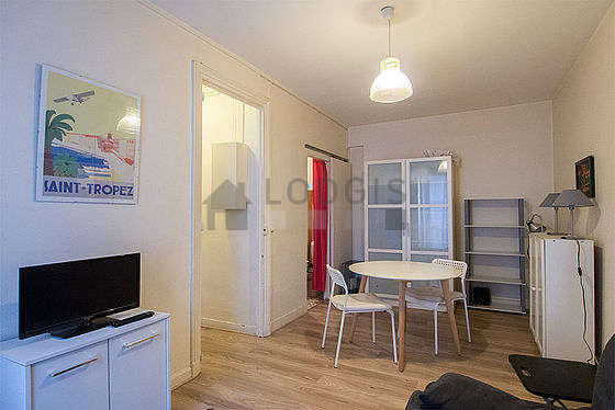 Cet appartement est composé d'un salon avec du parquet au sol et des fenêtres double vitrage et vue sur cour. Ce salon calme est meublé et équipé pour rendre votre séjour agréable : télé, draps, couettes, table à manger, penderie, etagère, armoire, commode, placard, 2 chaise(s)1 canapé(s) lit(s) de 140cm.
