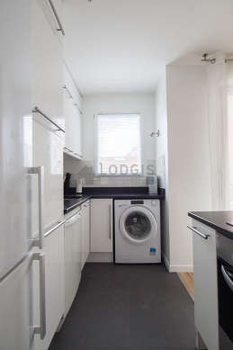 Cet appartement dispose d'une magnifique cuisine avec du carrelage au sol et tout l'équipement indispensable pour votre quotidien : plaques de cuisson, réfrigerateur, congélateur, four, micro ondes, hotte, grille pain, cafetière, etagère, placard, vaisselle, 1 chaise(s), bar.