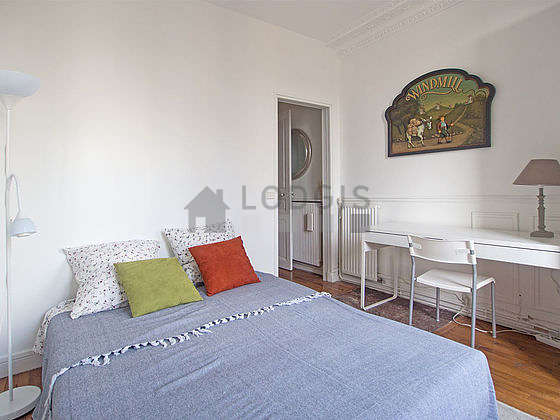 Avec du parquet au sol et des fenêtres double vitrage, balcon et vue sur rue, cette chambre séduisante offre l'équipement nécessaire pour vous reposer pendant votre séjour : draps, couettes, bureau, penderie, etagère, placard, 1 chaise(s), rideaux1 canapé(s) lit(s) de 140cm.