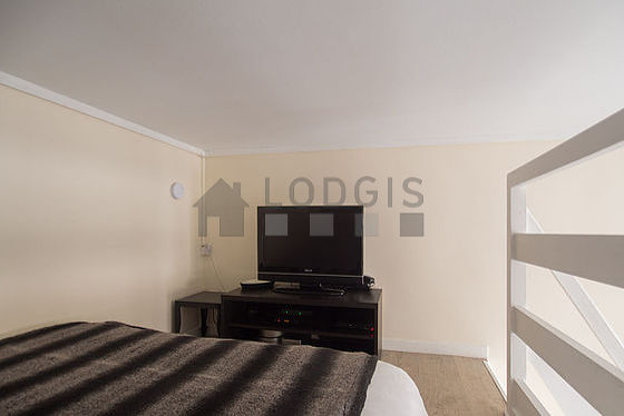 Grâce à une belle hauteur sous plafond, une belle mezzanine a pu être installée dans cet appartement , vous offrant ainsi une vraie pièce en plus équipée de télé, draps, couettes, meuble tv.