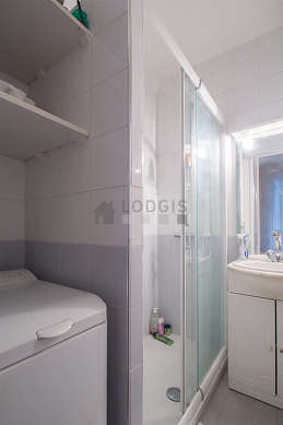 Cet appartement est équipé d'une salle de bain agréable. Cette salle d'eau bénéficie du nécessaire pour votre bien-être au quotidien : serviettes de bain, etagère, placard, douche séparée, lave main. Les toilettes sont séparées de la salle de bain et situées dans une pièce indépendante.