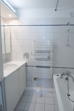 Cet appartement est équipé d'une salle de bain magnifique et claire. Cette salle d'eau bénéficie du nécessaire pour votre bien-être au quotidien : serviettes de bain, placard, baignoire, sèche cheveux, radiateur sèche-serviettes. Les toilettes sont séparées de la salle de bain et situées dans une pièce indépendante.