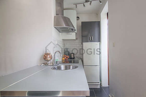 Cet appartement dispose d'une belle cuisine avec du parquet au sol et tout l'équipement nécessaire pour votre quotidien : plaques de cuisson, réfrigerateur, congélateur, four, hotte, bouilloire électrique, placard, vaisselle.