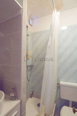 Cet appartement est composé d'un plaisant salon avec du parquet au sol et des fenêtres double vitrage et vue sur cour. Ce salon calme est meublé et équipé pour rendre votre séjour agréable : table à manger, etagère, 1 chaise(s).