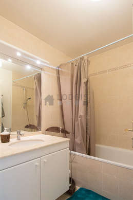 Cet appartement est équipé d'une salle de bain agréable. Cette salle d'eau bénéficie du nécessaire pour votre bien-être au quotidien : serviettes de bain, baignoire, sèche cheveux, lavabo, radiateur sèche-serviettes, tapis. Les toilettes sont séparées de la salle de bain et situées dans une pièce indépendante.