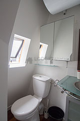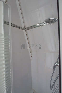 Cet appartement est équipé d'une salle de bain agréable et claire. Cette salle d'eau bénéficie du nécessaire pour votre bien-être au quotidien : serviettes de bain, etagère, placard, douche séparée, sèche cheveux, lave main, miroir, porte serviettes, radiateur sèche-serviettes. Les toilettes sont intégrées dans la salle de bain.