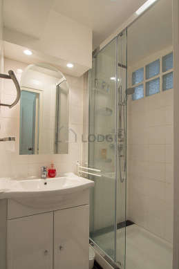 Cet appartement est équipé d'une salle de bain agréable. Cette salle d'eau bénéficie du nécessaire pour votre bien-être au quotidien : serviettes de bain, placard, douche séparée, lavabo. Les toilettes sont séparées de la salle de bain et situées dans une pièce indépendante.