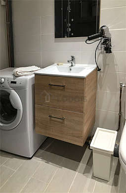 Cet appartement dispose d'une magnifique cuisine avec du carrelage au sol et tout l'équipement essentiel pour votre quotidien : plaques de cuisson, réfrigerateur, micro ondes, freezer, hotte, bouilloire électrique, cafetière, placard, vaisselle.