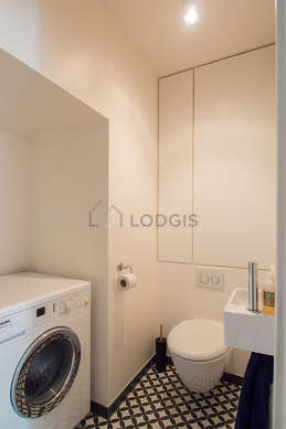 Cet appartement est équipé d'une salle de bain agréable et claire avec des fenêtres double vitrage. Cette salle d'eau bénéficie du nécessaire pour votre bien-être au quotidien : serviettes de bain, baignoire, douche séparée, lavabo, radiateur sèche-serviettes. Les toilettes sont séparées de la salle de bain et situées dans une pièce indépendante.