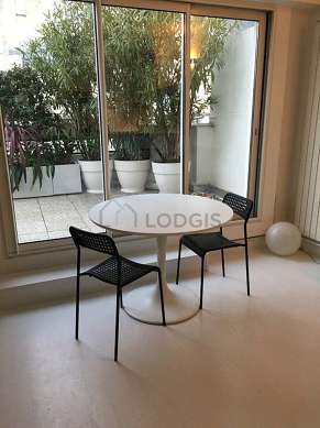 TerrasseAvec du béton au sol la terrasse exposée plein est de cet appartement vous séduira. Cet espace extérieur très calme et très lumineux et équipé de table à manger vous permettra de profiter pleinement de, surtout aux beaux jours.