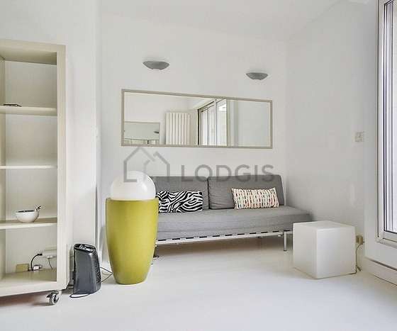 Cet appartement est composé d'un superbe salon avec du parquet au sol vue sur rue. Ce salon très calme est meublé et équipé pour rendre votre séjour agréable : télé, table basse, bureau, placard, 1 chaise(s)1 canapé(s) lit(s) de 140cm.