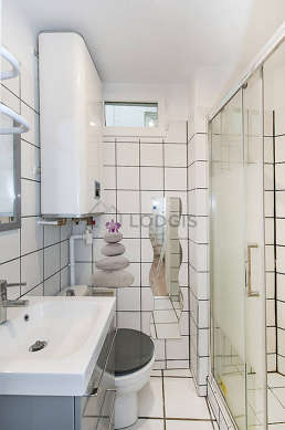 Cet appartement est équipé d'une salle de bain magnifique et claire. Cette salle d'eau bénéficie du nécessaire pour votre bien-être au quotidien : serviettes de bain, placard, douche séparée, sèche cheveux, lavabo, radiateur sèche-serviettes. Les toilettes sont intégrées dans la salle de bain.