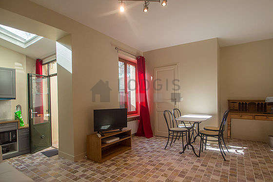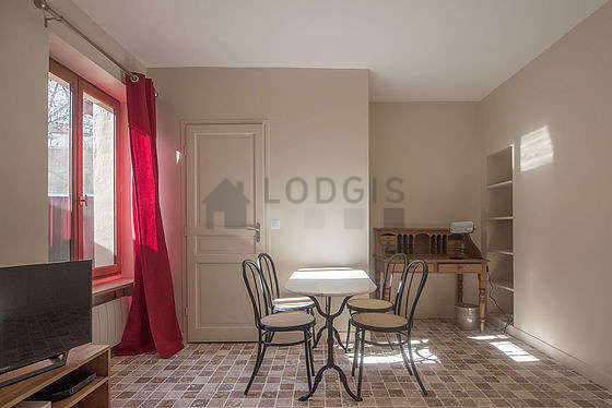 Cet appartement est composé d'un plaisant salon avec du carrelage au sol vue sur cour. Ce salon très calme est meublé et équipé pour rendre votre séjour agréable : télé, draps, couettes, table à manger, table basse, bureau, penderie1 canapé(s) lit(s) de 140cm.
