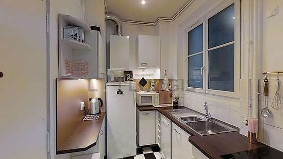 Cet appartement dispose d'une magnifique cuisine avec du carrelage au sol et tout l'équipement nécessaire pour votre quotidien : plaques de cuisson, réfrigerateur, micro ondes, freezer, grille pain, bouilloire électrique, cafetière, placard, vaisselle.