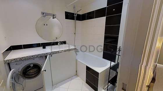 Cet appartement est équipé d'une salle de bain agréable. Cette salle d'eau bénéficie du nécessaire pour votre bien-être au quotidien : serviettes de bain, etagère, commode, baignoire, sèche cheveux, lavabo, radiateur sèche-serviettes. Les toilettes sont séparées de la salle de bain et situées dans une pièce indépendante.
