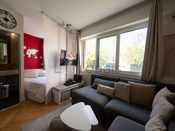 Cet appartement est composé d'un séduisant salon avec du parquet au sol vue sur jardin. Ce salon calme est meublé et équipé pour rendre votre séjour agréable : home cinéma, télé, draps, couettes, canapé, penderie, etagère, armoire, placard2 canapé(s) lit(s) de 80cm, 1 lit(s) de 160cm.