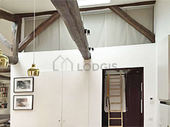 Grâce à une belle hauteur sous plafond, une mezzanine a pu être installée dans cet appartement , vous offrant ainsi une vraie pièce supplémentaire équipée de draps, couettes.