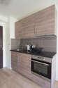 Cet appartement dispose d'une magnifique cuisine avec du parquet au sol et tout l'équipement indispensable pour votre quotidien : plaques de cuisson, réfrigerateur, four, micro ondes, freezer, hotte, grille pain, bouilloire électrique, cafetière, placard.