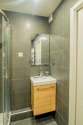 Cet appartement est équipé d'une salle de bain magnifique et très claire. Cette salle d'eau bénéficie du nécessaire pour votre bien-être au quotidien : serviettes de bain, douche séparée, sèche cheveux, lavabo, radiateur sèche-serviettes, ventilateur. Les toilettes sont intégrées dans la salle de bain.