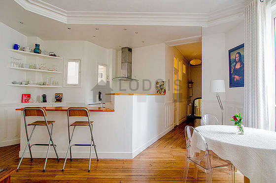 Cet appartement est composé d'un magnifique salon avec du parquet au sol vue sur cour. Ce salon très calme est meublé et équipé pour rendre votre séjour agréable : télé, 1 fauteuil(s), table à manger, table basse, 4 chaise(s), tabouret1 canapé(s) lit(s) de 140cm.