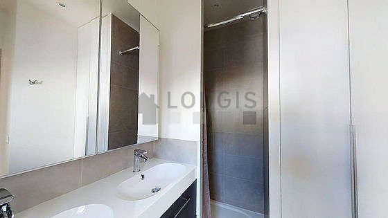 Cet appartement est équipé d'une salle de bain magnifique et claire avec des fenêtres double vitrage. Cette salle d'eau bénéficie du nécessaire pour votre bien-être au quotidien : serviettes de bain, placard, douche séparée, sèche cheveux, lavabo, radiateur sèche-serviettes. Les toilettes sont séparées de la salle de bain et situées dans une pièce indépendante.