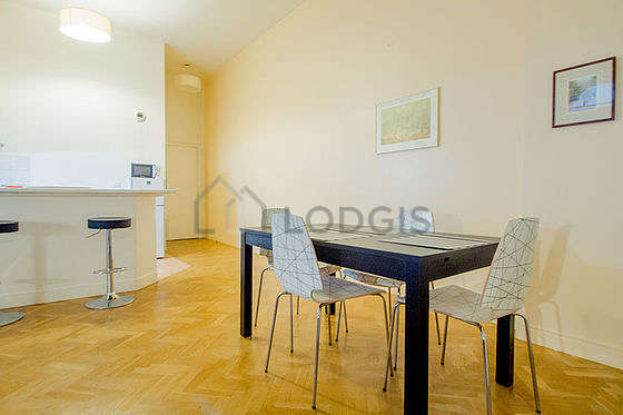 Cet appartement est composé d'un superbe salon avec du parquet au sol vue sur rue. Ce salon très calme est meublé et équipé pour rendre votre séjour agréable : télé, table à manger, table basse, etagère, placard, 4 chaise(s)1 lit(s) de 140cm.