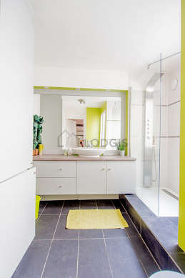 Cet appartement est équipé d'une salle de bain magnifique et très claire avec des fenêtres double vitrage. Cette salle d'eau bénéficie du nécessaire pour votre bien-être au quotidien : serviettes de bain, douche séparée, lavabo, radiateur sèche-serviettes. Les toilettes sont intégrées dans la salle de bain.