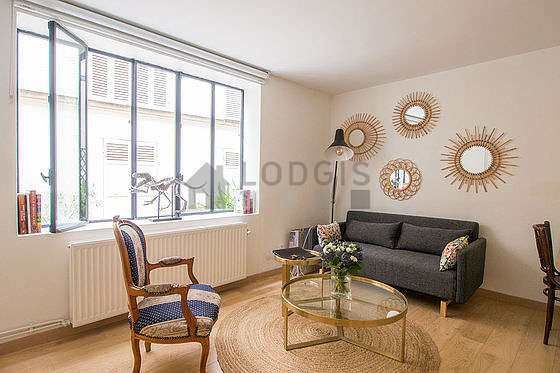 Cet appartement est composé d'un beau salon avec du parquet au sol vue sur cour. Ce salon très calme est meublé et équipé pour rendre votre séjour agréable : télé, draps, couettes, canapé, 1 fauteuil(s), table basse, etagère, meuble tv1 canapé(s) lit(s) de 140cm.
