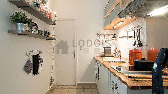 Cet appartement dispose d'une magnifique cuisine avec du carrelage au sol et tout l'équipement nécessaire pour votre quotidien : plaques de cuisson, réfrigerateur, micro onde combiné, freezer, hotte, grille pain, bouilloire électrique, cafetière, etagère, placard, vaisselle.
