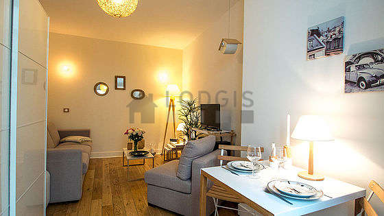 SéjourCet appartement est composé d'un beau salon avec du parquet au sol vue sur cour. Ce salon très calme est meublé et équipé pour rendre votre séjour agréable : télé, draps, couettes, canapé, 1 fauteuil(s), table à manger, table basse, penderie, etagère, armoire, placard, 2 chaise(s)1 canapé(s) lit(s) de 160cm.