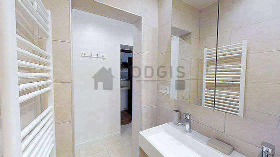 Cet appartement est équipé d'une salle de bain magnifique. Cette salle d'eau bénéficie du nécessaire pour votre bien-être au quotidien : serviettes de bain, etagère, placard, douche séparée, sèche cheveux, lavabo, radiateur sèche-serviettes. Les toilettes sont séparées de la salle de bain et situées dans une pièce indépendante.