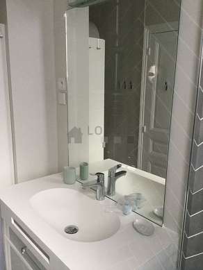 Cet appartement est équipé d'une salle de bain agréable et claire avec des fenêtres double vitrage. Cette salle d'eau bénéficie du nécessaire pour votre bien-être au quotidien : serviettes de bain, etagère, placard, douche séparée, sèche cheveux, lavabo, radiateur sèche-serviettes. Les toilettes sont séparées de la salle de bain et situées dans une pièce indépendante.