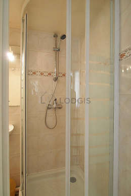 Cet appartement est composé d'un salon avec du carrelage au sol et des fenêtres double vitrage et vue sur cour. Ce salon calme est meublé et équipé pour rendre votre séjour agréable : télé, table à manger, penderie, etagère, placard, 3 chaise(s)1 canapé(s) lit(s) de 140cm.