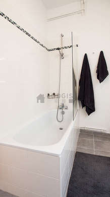 Cet appartement est équipé d'une salle de bain magnifique et claire. Cette salle d'eau bénéficie du nécessaire pour votre bien-être au quotidien : serviettes de bain, commode, sèche cheveux, lavabo, radiateur sèche-serviettes. Les toilettes sont séparées de la salle de bain et situées dans une pièce indépendante.
