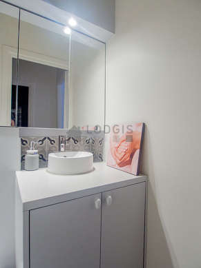Cet appartement est équipé d'une salle de bain magnifique et claire. Cette salle d'eau bénéficie du nécessaire pour votre bien-être au quotidien : serviettes de bain, placard, baignoire, sèche cheveux, lavabo. Les toilettes sont séparées de la salle de bain et situées dans une pièce indépendante.