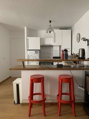 Cet appartement dispose d'une belle cuisine avec du carrelage au sol et tout l'équipement nécessaire pour votre quotidien : plaques de cuisson, réfrigerateur, congélateur, four, micro ondes, hotte, grille pain, bouilloire électrique, cafetière, table à manger, etagère, placard, vaisselle, 2 chaise(s).