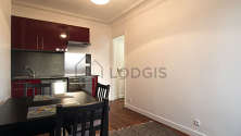 Cet appartement est composé d'un séduisant salon avec du parquet au sol vue sur rue. Ce salon très calme est meublé et équipé pour rendre votre séjour agréable : télé, table à manger, etagère, 4 chaise(s).